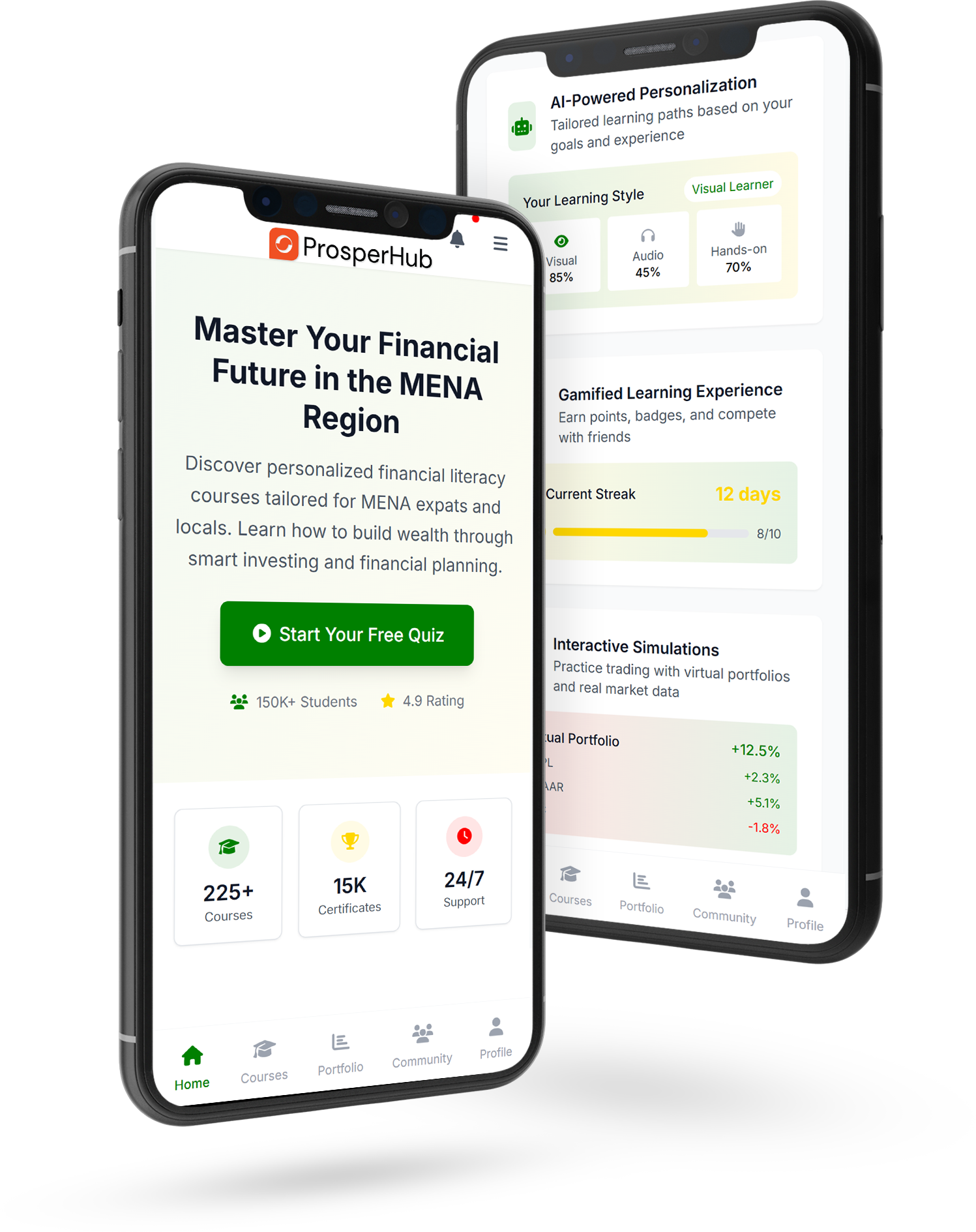 ProsperHub is a mobile-first app launching in Q1 2026, offering 225 interactive courses to boost financial literacy in the UAE, where only 30.7% of adults are financially literate. It’s for everyone, expats (88% of Dubai’s 3.9M population), locals, and students, covering budgeting, saving, investing, and retirement planning. Whether you’re a beginner managing daily expenses or an intermediate planning wealth growth, our AI-tailored paths and bilingual (Arabic/English) content make financial success accessible. Start with a free quiz to find your path!